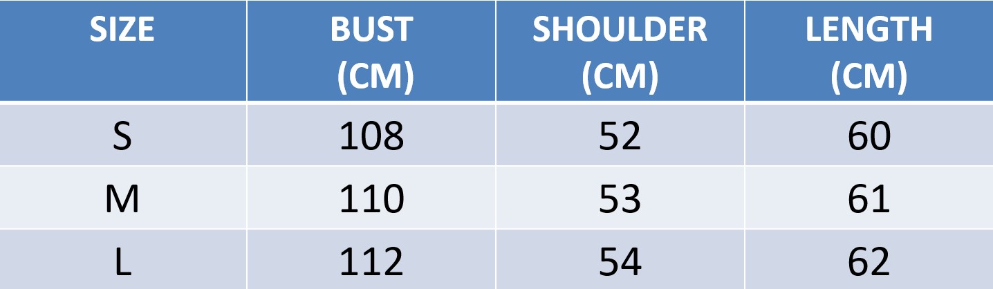 Additionally, slight measurement differences of 1–2 cm may occur due to the stretchable nature of the material and the method of measurement.