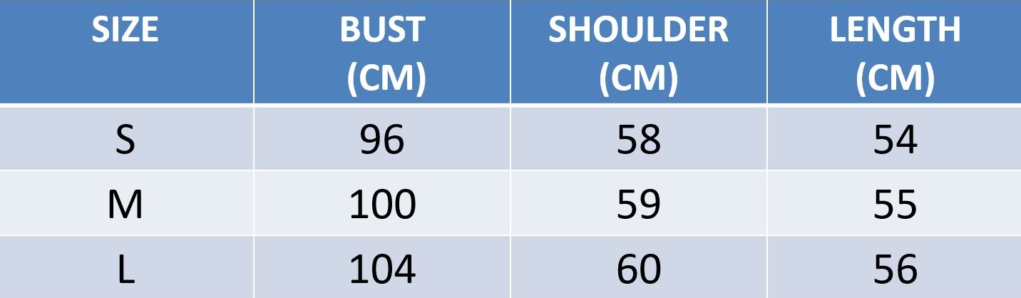 Additionally, slight measurement differences of 1–2 cm may occur due to the stretchable nature of the material and the method of measurement.